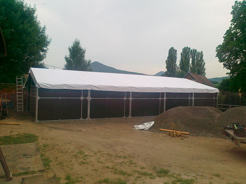 Kvalitní turnajové boxy ve skládaném, jednoduše smontovatelném systému, ocelová konstrukce žárově zinkovaná, výdřevy – nárazu a vodě odolná překližka. Střecha pevná, prošívaná autoplachta z PVC, volba barvy dle výběru.