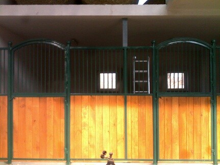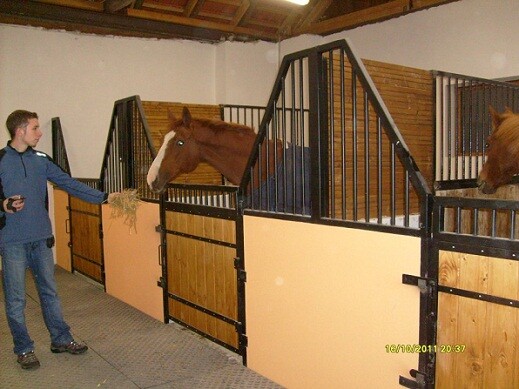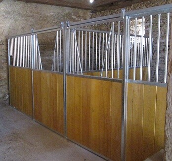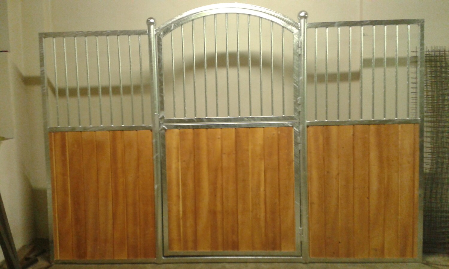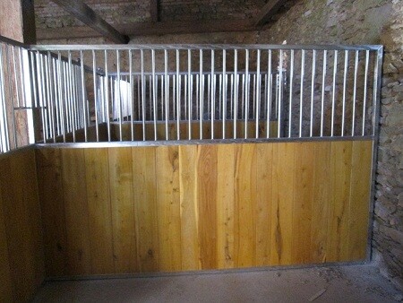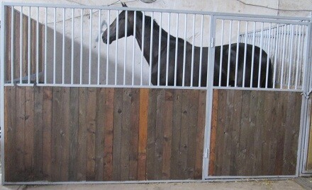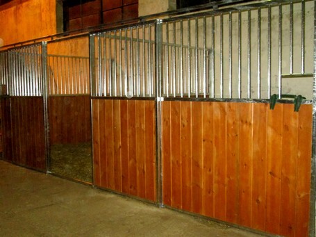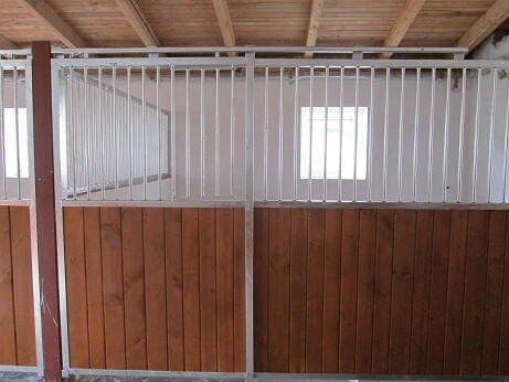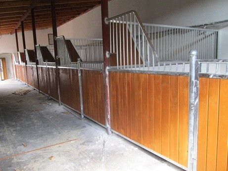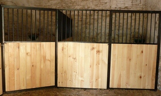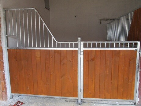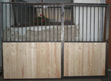 Ekonomické čelní stěny. Jedná se o ekonomické provedení ze slabších profilů a prken, vhodné pro klidné, menší koně nebo poníky. Délka, šířka i výška lze upravovat dle požadavků zákazníka. Dveře lze kombinovat s hlavovými výklenky nebo otevírací částí mříží. Dále lze zhotovit zavírací pevný nebo výklopný žlabový otvor.